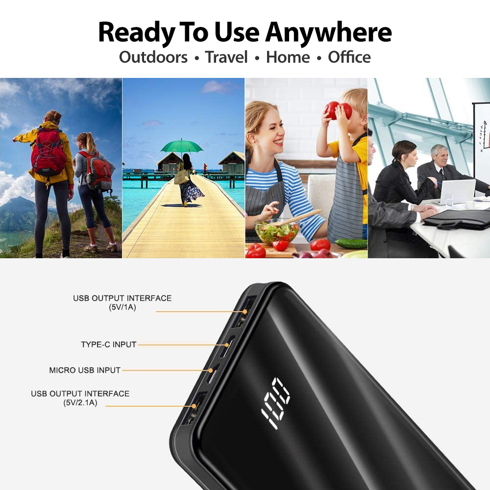 • High Charging Capacity - Large Capacity Portable Charger with 10,000mAh capacity  so you don't have to worry loosing power while on-the-go. It's a perfect backup power for your daily phone and mobile device use